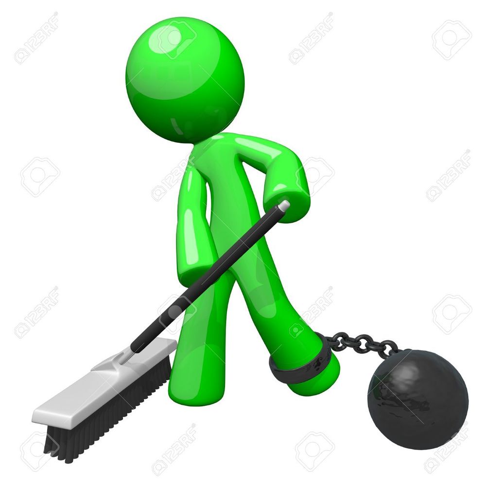 15805908 Hombre Verde Con Una Bola Y Una Cadena De Barrer El Suelo Denota La Esclavitud La Servidumbre De Cue Foto De Archivo (image/jpeg)