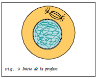 En la profase tardía, el núcleo se hincha por la entrada de agua hasta que se fragmenta el
