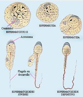 La siguiente fase es la espermiogénesis. En ella, las espermátidas se convierten