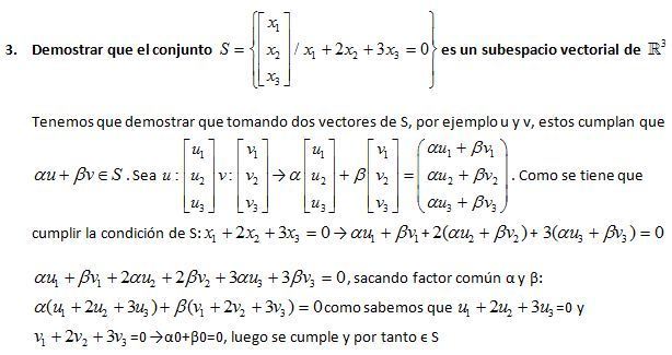 es un subespacio vectorial de V si: i) ∀u, v ∈ U, u + v ∈ U