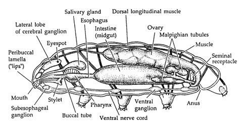 Organismos celomados, con simetria bilateral, Presenta un cuerpo de 4 a 5 segmentos, con un par de patas en cada uno. Son organismos Diocos