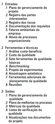 limitados, a: • Plano de gerenciamento da qualidade (Seção 8.1.3.1), • Plano de gerenciamento do escopo (Seção