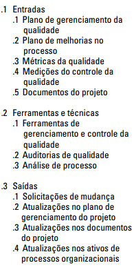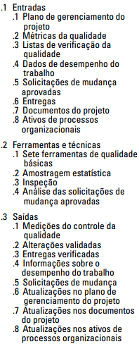 do processo Controlar a qualidade são as entregas verifcadas. As entregas verifcadas são uma entrada para o
