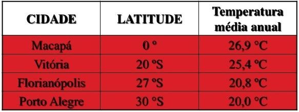 Quanto menor a latitude, maiores são as temperaturas