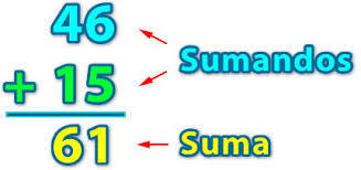 En la adición como también es conocida la suma, el signo que se utiliza es una cruz (+) que llamamos más, las cantidades que sumamos se llaman