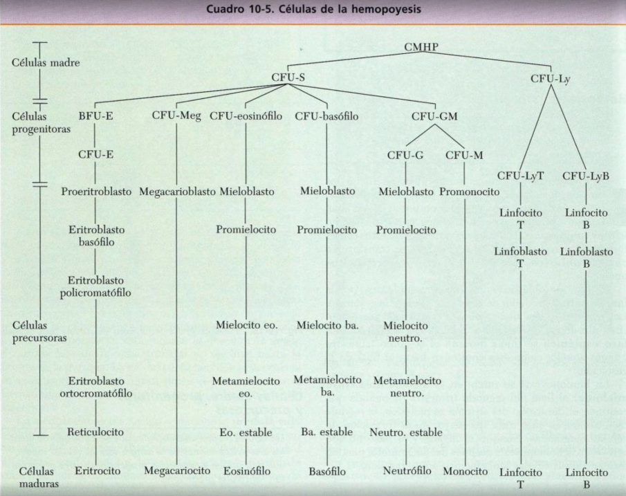 1. Las celulas menos diferenciadas que se encargan de crear los elementos formes a la sangre son las celulas madre, que dan origen a las celulas progenitoras, cuya progenie son las celulas precursoras.