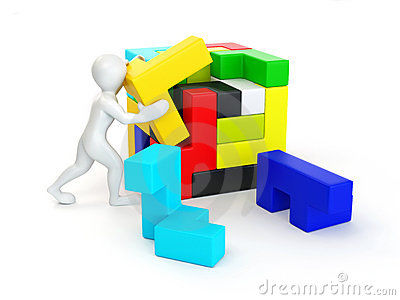 Homens Com Um Cubo Construído Dos Blocos Enigma 14803068 (image/jpeg)