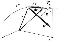 Llamamos trabajo elemental, (dW) de la fuerza (F)