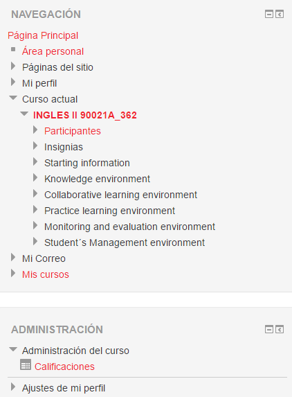 Al lado izquierdo de los entornos del curso Ingles 2, vamos a