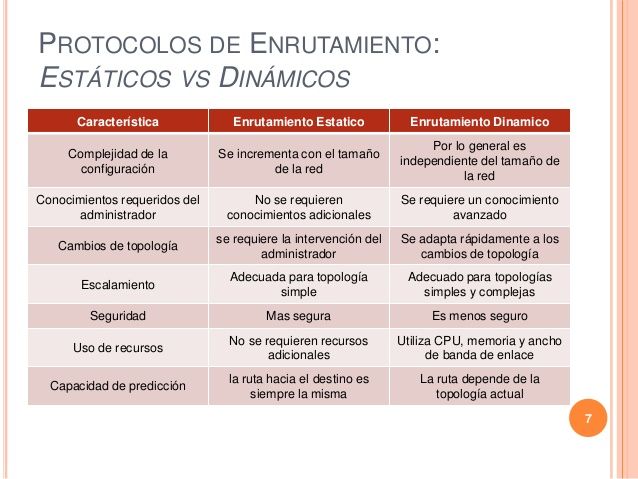 de la ruta. · No se adapta bien con las redes en crecimiento; el