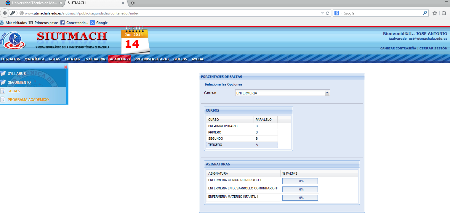 Una vez selecionada la opciòn del SIUTMACH se nos abre la pestaña de INICION DE SECCIÓN en el cual debemos