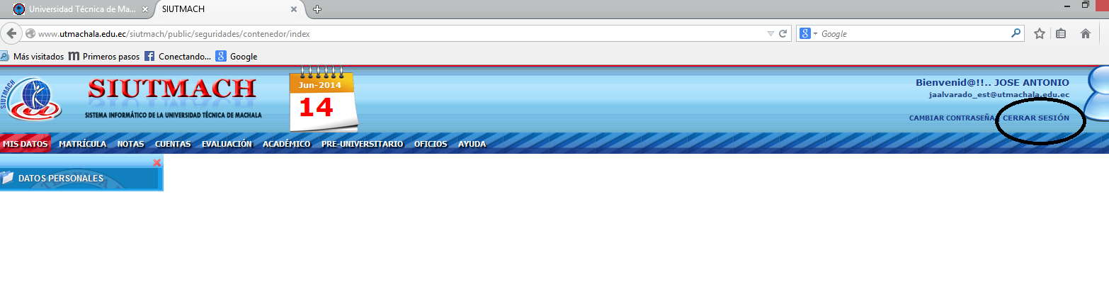 luego observamos que hemos ingresado al SIUTMACH y podemos revisar las opciones que nos da en la cual solo espersonal