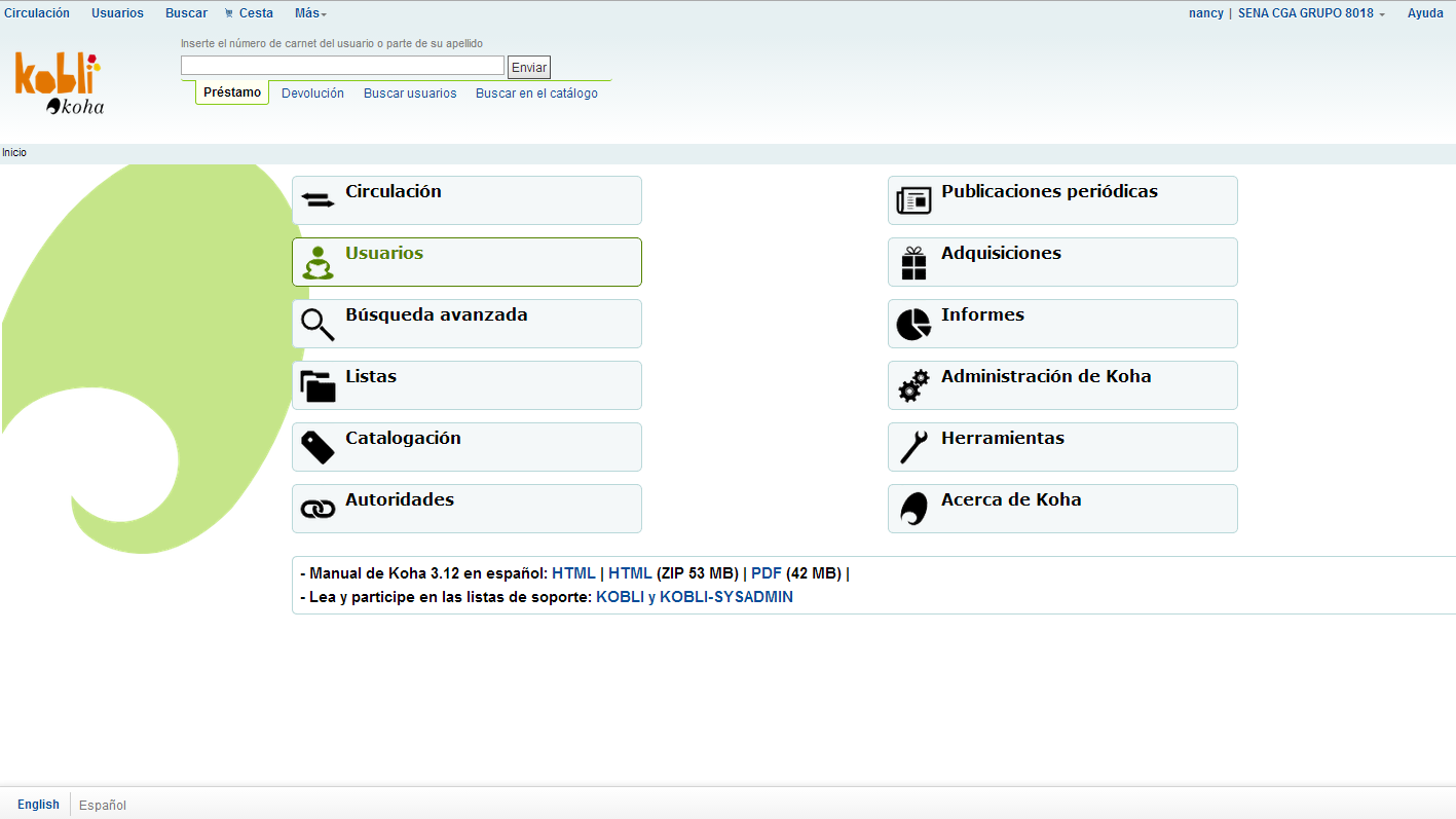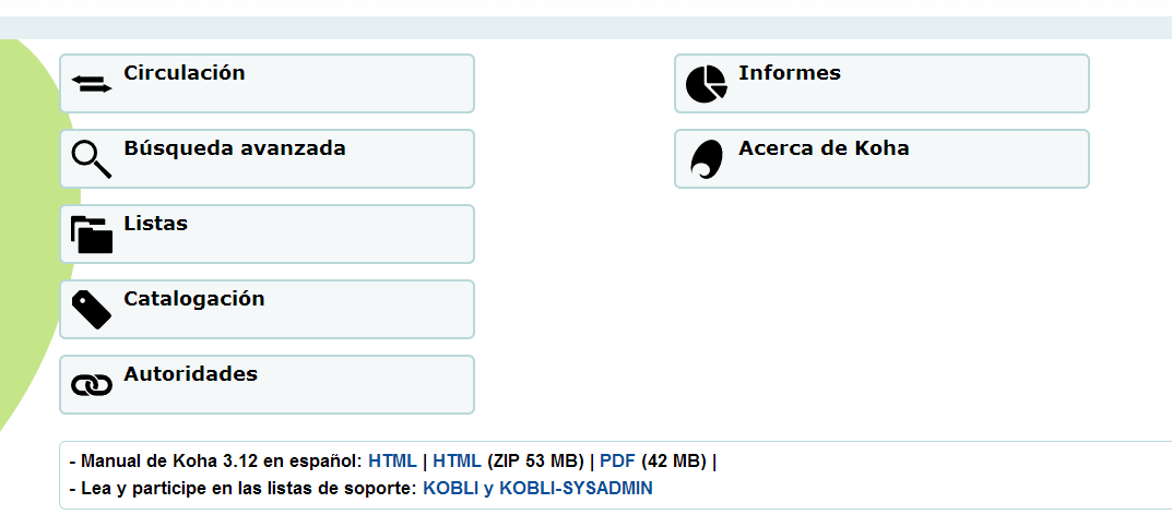 En este mapa podemos visualizar,los módulos de koha,por medio de administración,y no como usuario.