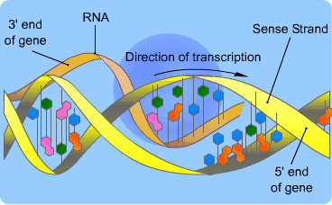 A strand of mRNA is produced using one strand of complementary DNA.