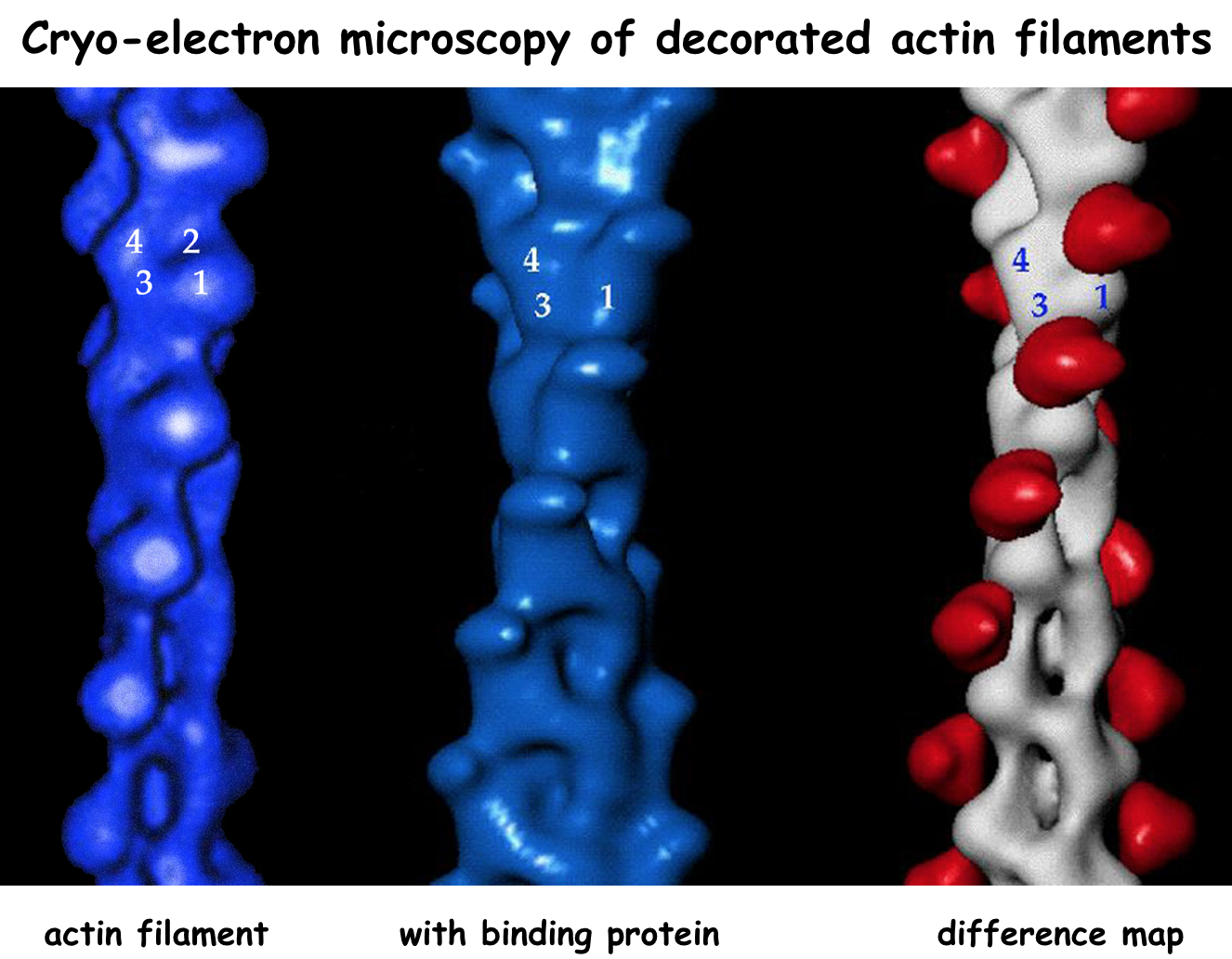 EM uses negative stain (shown) or vitreous ice (cryo-EM) to preserve the specimen.