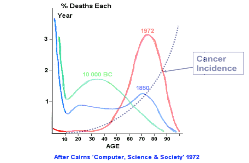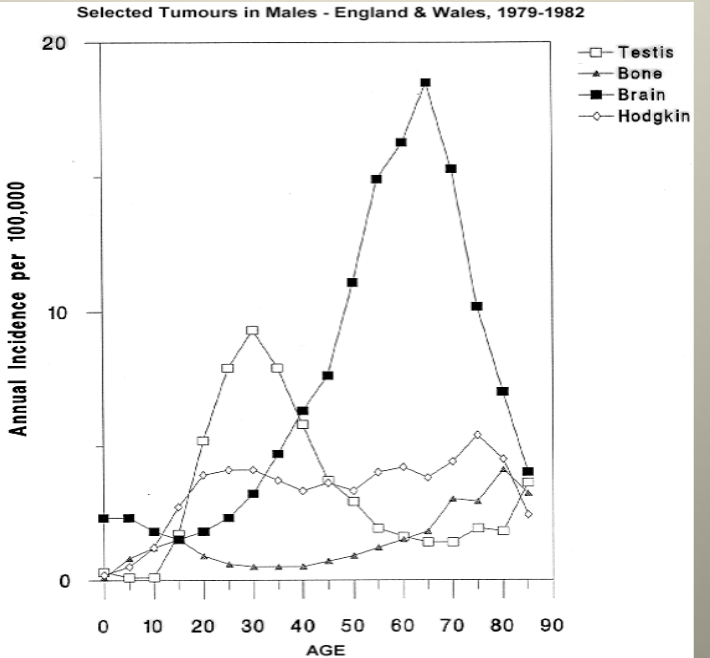 The age/incidence profile varies with different cancers