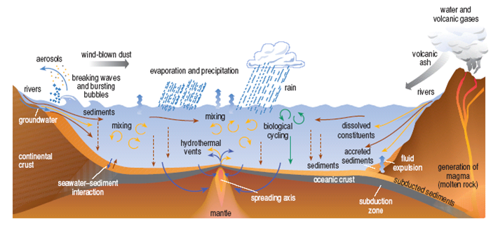 Marine life to form sediment in subduction zone. Inputs are rivers, ground water, vents, volcanic material, etc