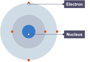 nucleus is very much smaller than the atom as a whole. The electrons are arranged in shells
