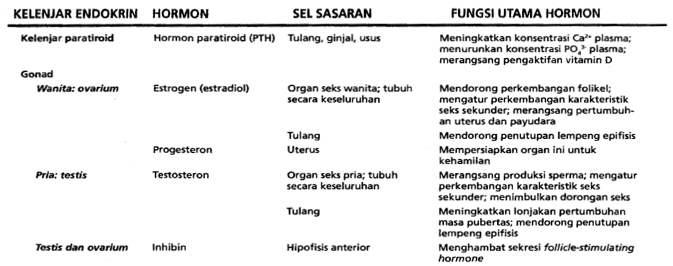 Estrogen & progesteron: menjaga kehamilan & mempersiapkan kelenjar mammae sekresi susu. Sel target : organ reproduksi wanita & kelenjar mammae