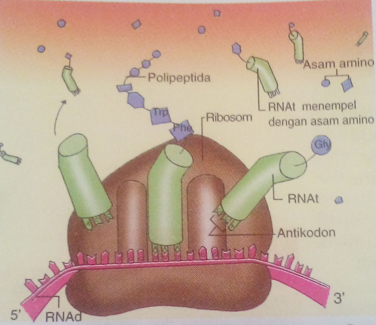 dalam gen diterjemahkan menjadi urutan asam amino selama
