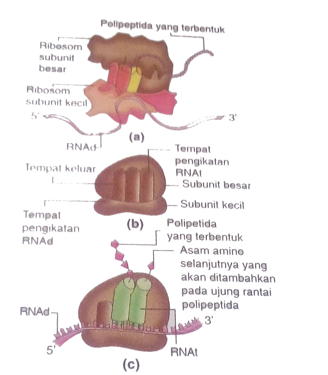 Anatomi ribosom: (a) ribosom fungsional