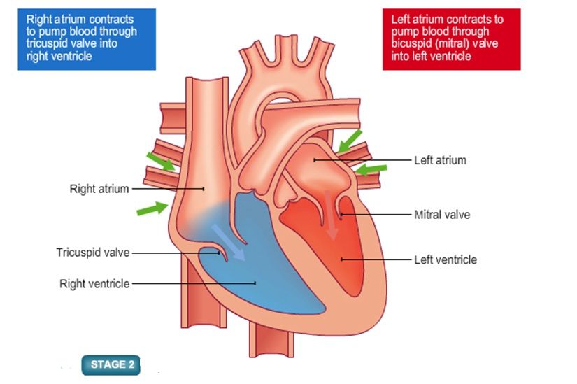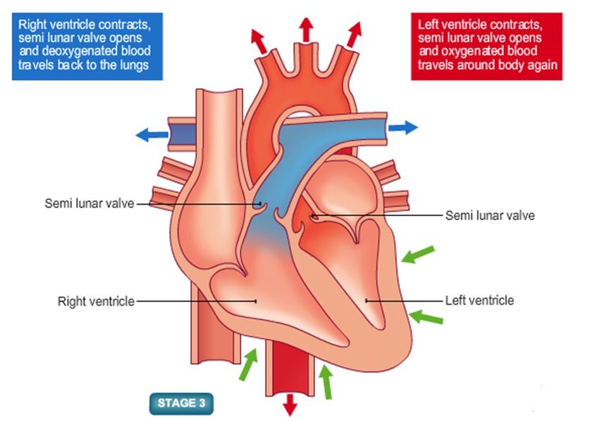 The Heart contracts and relaxes pumping blood around the body. This is called a heartbeat.