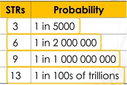 Fragment of interests in DNA are called Short Tandem Repeats (STR)