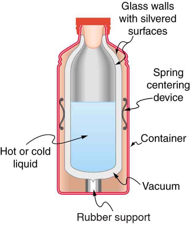 Vacuum- no air inside prevents conduction and convection