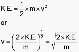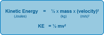Kinetic energy (J) = 1/2 x Mass (Kg) x Velocity2 (m/s)