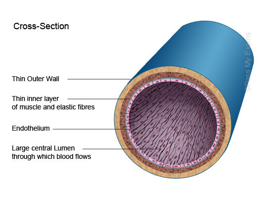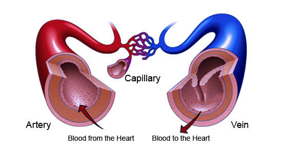 Smaller arteries that branch off, one cell thick (hair strand size), walls are semipermeable