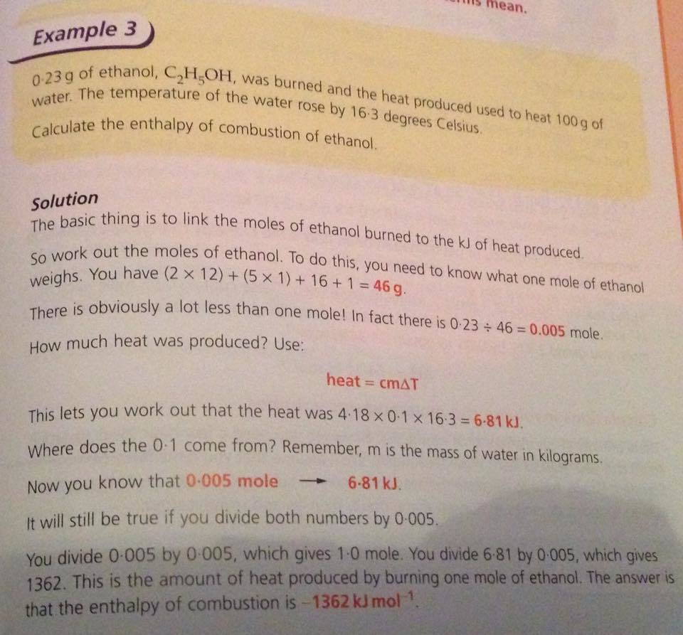 enthalpy of combustion of ethanol