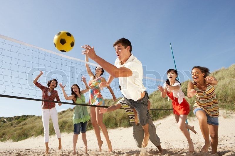 1240629 Gruppe Von Teenager Freunde Spielen Volleyball Am Strand (image/jpeg)