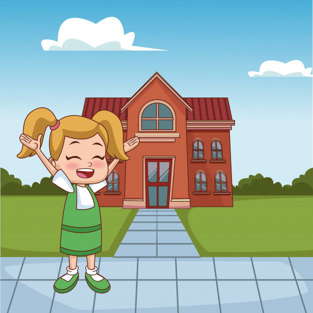 Nina Feliz Fuera Dibujos Animados Construccion Escuela 18591 19167 (image/jpeg)