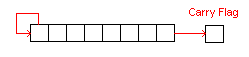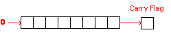 One bit 'falls off' (possibly into the Carry flag), and a 0 is shifted in.