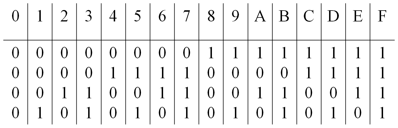 The hexadecimal number system has a base of 16, and uses the following symbols: