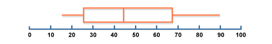 residents is 44, the lower quartile is 25, and the upper quartile is 67. Represent this information with