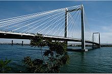 1. Continuous grider with one or two towers erected above piers in the middle of a span. Cables are attached diagonally from the piers to the girder.