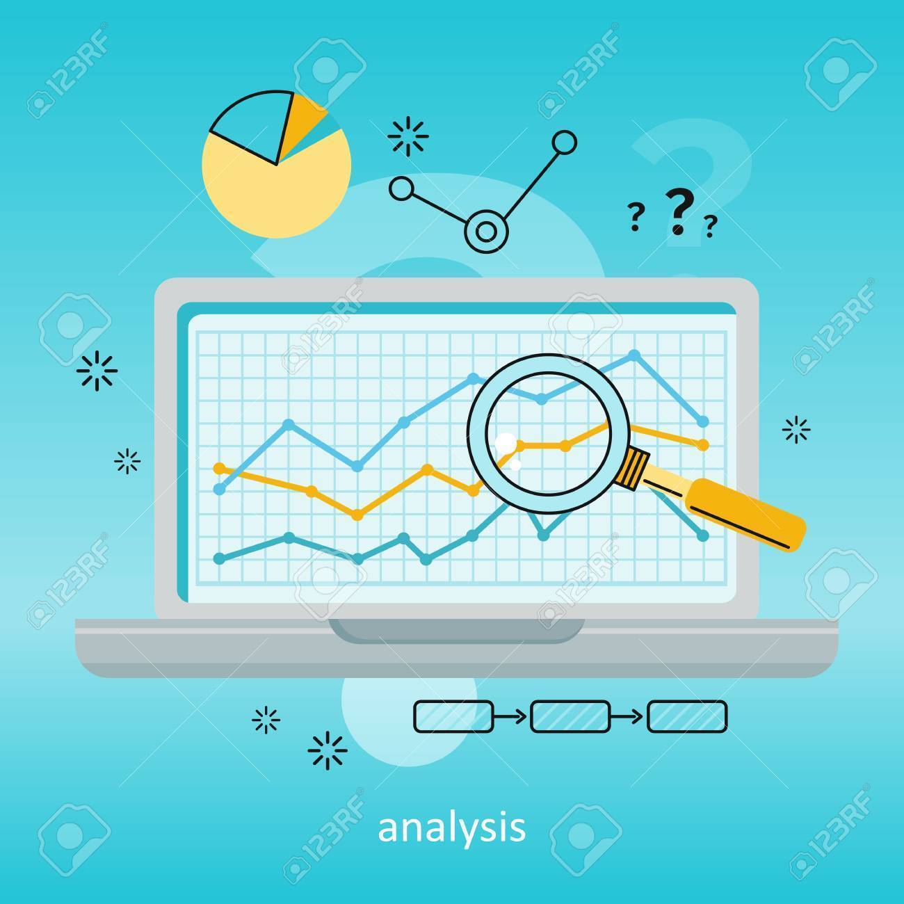 67684368 Ordenador Portátil Con Lupa Y Diagrama En La Pantalla Ordenador Portátil Con Infografías Sobre Fondo Azul (image/jpeg)