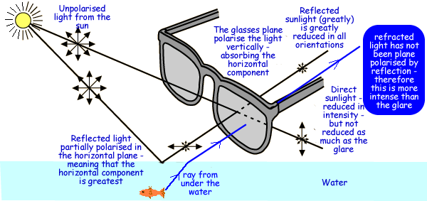 Fishermen wear Polaroid glasses to eliminate reflected glare