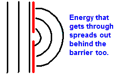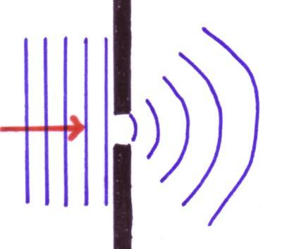 Diffraction happens when a wave hits an obstacle or
