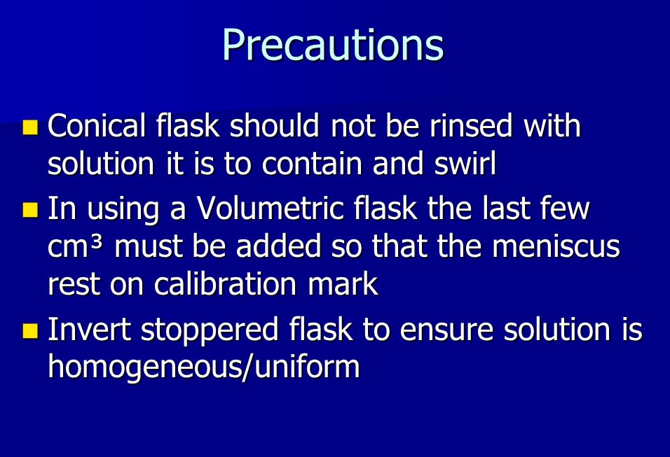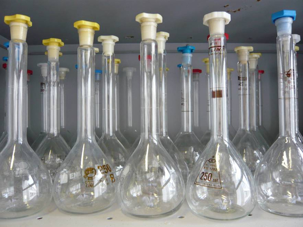 Quantitative analysis using accurately measured titrated volumes of standard chemical solutions