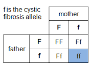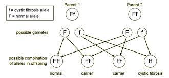 This is because the F is more dominant than the f. There is only 1/4 ff so there is a 25% chance of a child having CF