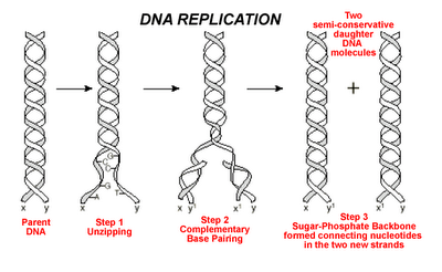 1. DNA is replicated during Interphase, the double helix unwinds into two seperate strands