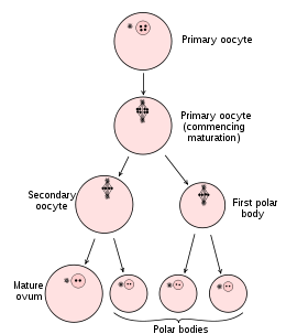 Most of the cytoplasm will go to one of the daughter cells, called the ovum, and a smaller polar body will be formed