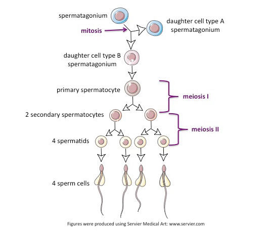 When boy reached puberty , spermatogonia reproduces by mitosis. The resulting cells then undergo meiosis to form four haploid cells