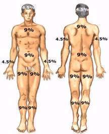 Regla de los 9: cada segmento corporal se le asigna un múltiplo de nueve para hacer una estimación de la extensión de la quemadura.