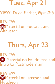 can be clear seen in the academic appeal to 'Fight Club' - because it address Foucault's concept of
