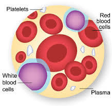 a description of what blood is made out of- red blood cells, plasma, platelets and leukocytes. and information about each one.