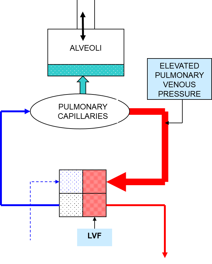 Blood accum in LV and LA - inc venous pul pressure - inc pul capp bp - excess isf = pumonary oedema (impaird gas exchange/diff breathing)