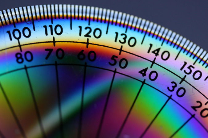 1. A protractor has two scales, a center point and a base line
